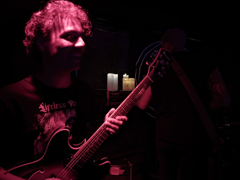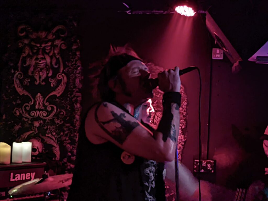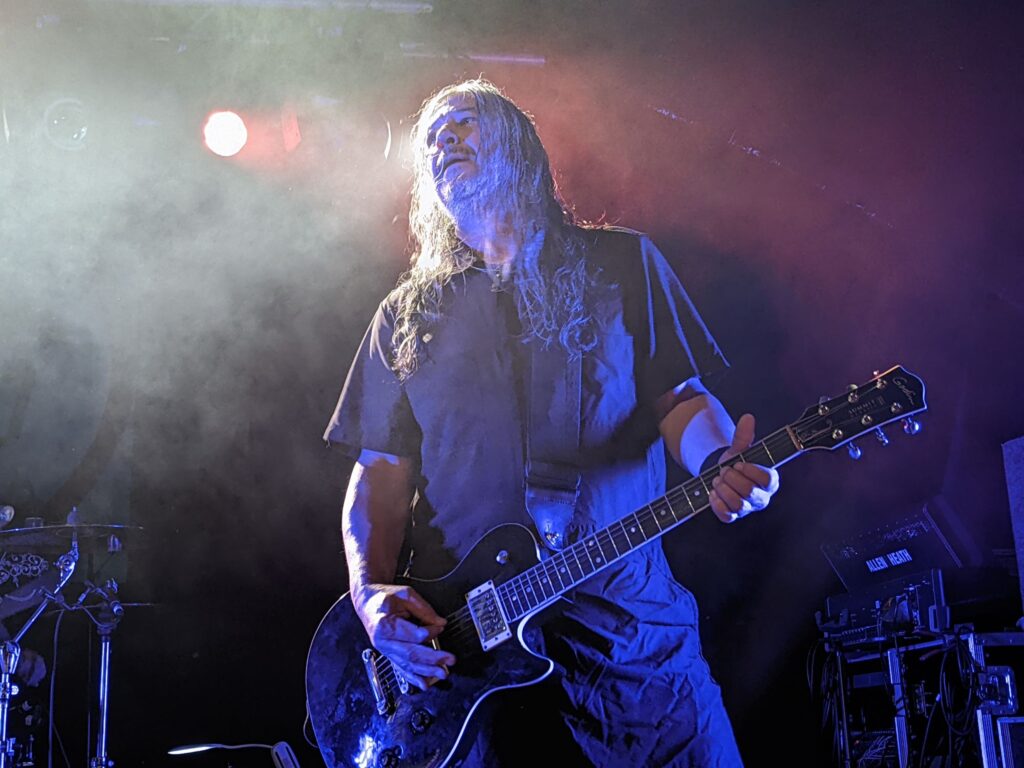 Cambridge chunder merchants Celestial Sanctuary stepped up next, their chunky, pounding riffage kicking off the first moshpits of the day. Vocalist–guitarist Thomas Cronin also made a point of barking the crowd awake, even throwing me a fistbump at one point — can’t fault the energy! That said, their stuff plays in the lane of what I like to call “dull-bludgeon death metal”: the kind of DM that struggles to keep a grip on me, too light on memorable hooks, shapely riffs, or any ritual texture, occasional standouts like ‘Trapped Within the Rank Membrane‘ aside. Seeing them a third time only reinforced that view.