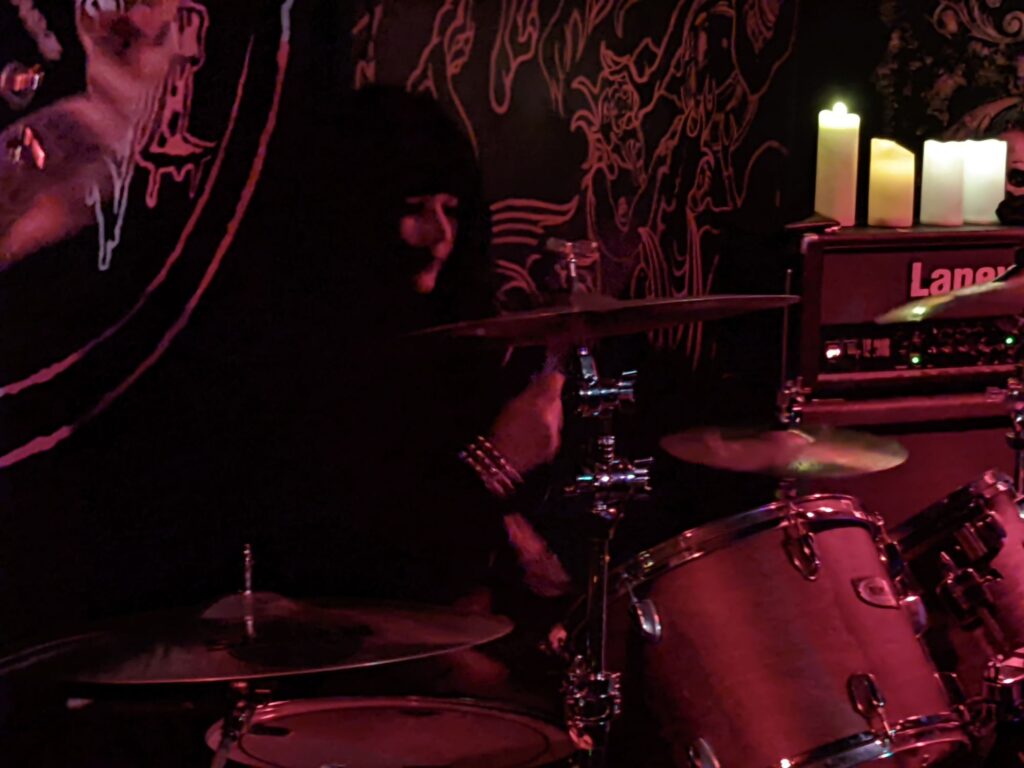 Having seen fellow Londoners Overthrow play virtually the same set multiple times over the preceding years, watching their set felt more like slipping into a pair of comfy-but-worn blackened-death loafers than the full-throated exhilaration of the first couple of times. Still, opener ‘Caustic Vengeance (Blindly Driven)’ and the EP’s title track, ‘Ascension of the Entombed’, retain considerable potency, hitting that sweet zone of immersion where tremolo plucks and blastbeats fuck. I’ll also give them kudos for their top-notch take on Black Sabbath’s ‘War Pigs’, no doubt added to honour the recently departed Ozzy.
