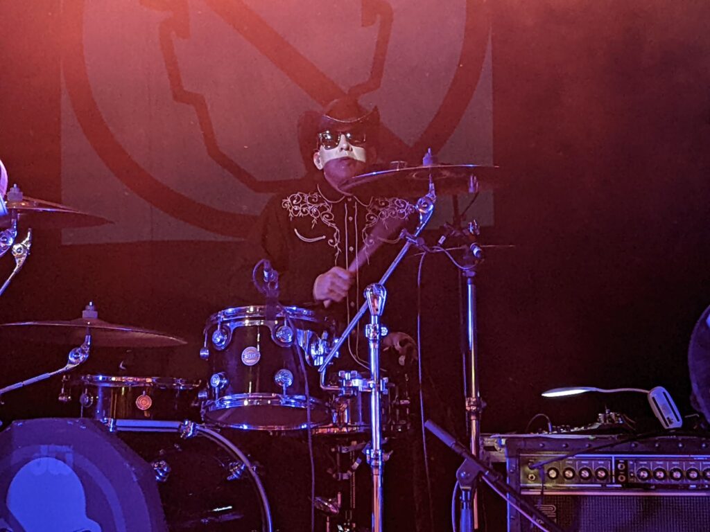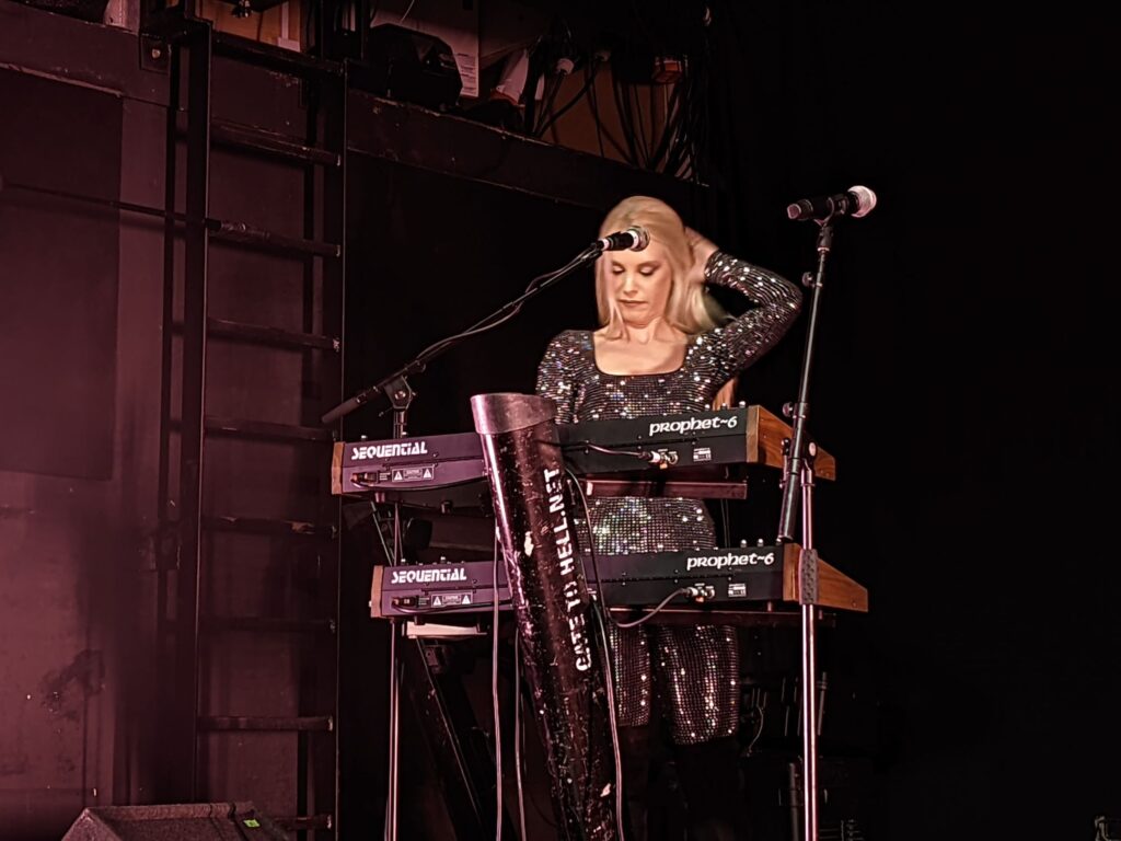 After further serrating of the species’ slavishness, the grand unveiling of its malevolent lord/master/pimp (I’d say whom, but I’m scribing this on a Sunday), and a chaotic spiral of solos and returning riffs, the track reached its end with Melissa glaring from the stage, leg cocked, caked in sweat, hair plastered to her face, looking wrecked in the best possible way.