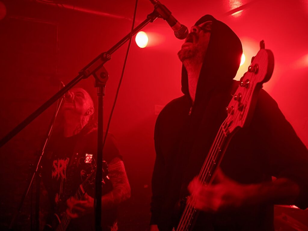 Next came the band I’d most been looking forward to, the second set of Maple Leafers on the bill, Ceremonial Bloodbath. Having enjoyed listening to their discography, particularly their latest album, Genesis of Malignant Entropy—which I took great pride in snagging on CD on the run-up to the gig due to it being sold out almost everywhere on the planet—my hopes were high for this set, and I was not disappointed. With tracks such as ‘Exhumation of the Ominous’, ‘Howl of Gnawing Teeth’, ‘Caustic Invocation’, and ‘Mutilation of Sacrifice’, Ceremonial Bloodbath exemplified why I rate them as one of the best bands knocking out this style of blackened-death metal alongside the likes of Concrete Winds, Qrixkuor, and Mitochondrion. With the right blend of texture, structure, menace, and fury, they kept me and the rest of the room engaged, aurally and kinetically, for the duration of their sterling set. When I spoke with drummer Nuclear Hammer Throne (Anju Singh) after their set, she expressed a strong desire to return in a headlining capacity. I for one hope they follow through on that.