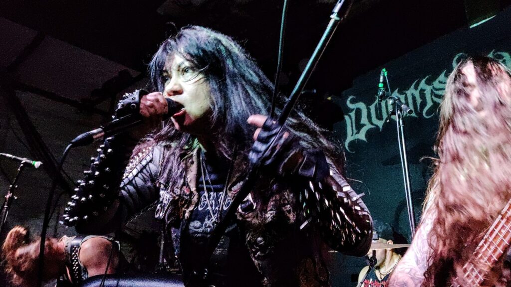 On cue, Dan drummed back in for the outro, stickwork fit for a tribal warband; the others followed, instruments crashing back in as they kicked off an infectious chant of hails that gripped certain front-row diehards; finally, Melissa swooped in with her own hails to His Infernal Majesty, seeing out the tone-setting opening attack.